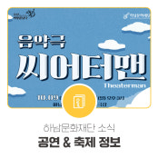 하남문화재단 벼랑끝날다 음악극 <씨어터맨> 연인, 가족, 친구 그리고 웃음과 눈물 등 다양한 삶의 이야기가 머무르는 15세 이상 누구나 미소와 애잔슬픔 간이역에서 펼쳐지는 아름다운 스토리 음악과 노래가 있는공간 위트와 소통으로 가득찬 감동의 시간 함께 해보세요~ 출연 (1…